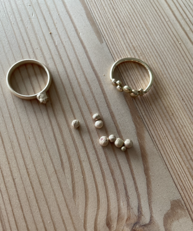 Se processerne her i billedserien og nyd resultatet af deres flotte håndlavede og unikke 14 kt guld ringe.