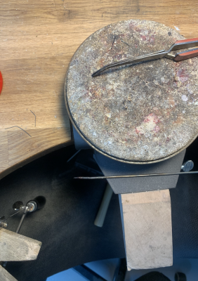 Denne custom ordre var rigtig speciel. Jeg havde ikke selv arbejdet med tænder før, og derfor måtte jeg rådføre mig hos en “kollega”, der tilfældigvis tit arbejder i knogler og tænder – dog ikke menneske tænder, men hun havde prøvet det før. Da mælketænder er mere skrøbelige end eksempelvis knogler eller en visdomstand, så var den allerede en udfordring i sig selv her. Udfordringen var at finde en løsning, hvor tanden også ville sidde godt fast og lidt beskyttet. Løsningen blev at lave et vedhæng, hvor tråden drejer rundt om tanden og holder den fast. Da det netop er en mælketand, er smykket heller ikke egnet til hverdagsbrug, og man skal have i baghovedet, at tanden måske vil blive ætset af parfume, cremer og hvad man ellers bruger. Så derfor bliver smykket bare et helt særligt og fint lille smykke.
