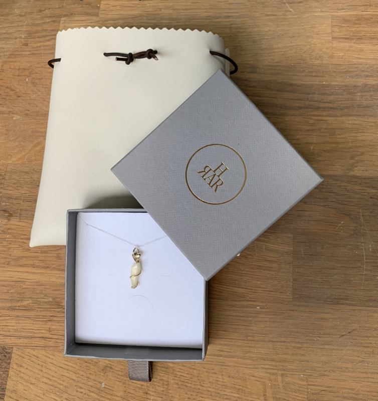 CUSTOM – 14 kt guld vedhæng med tand Denne custom ordre var rigtig speciel. Jeg havde ikke selv arbejdet med tænder før, og derfor måtte jeg rådføre mig hos en “kollega”, der tilfældigvis tit arbejder i knogler og tænder – dog ikke menneske tænder, men hun havde prøvet det før. Da mælketænder er mere skrøbelige […]