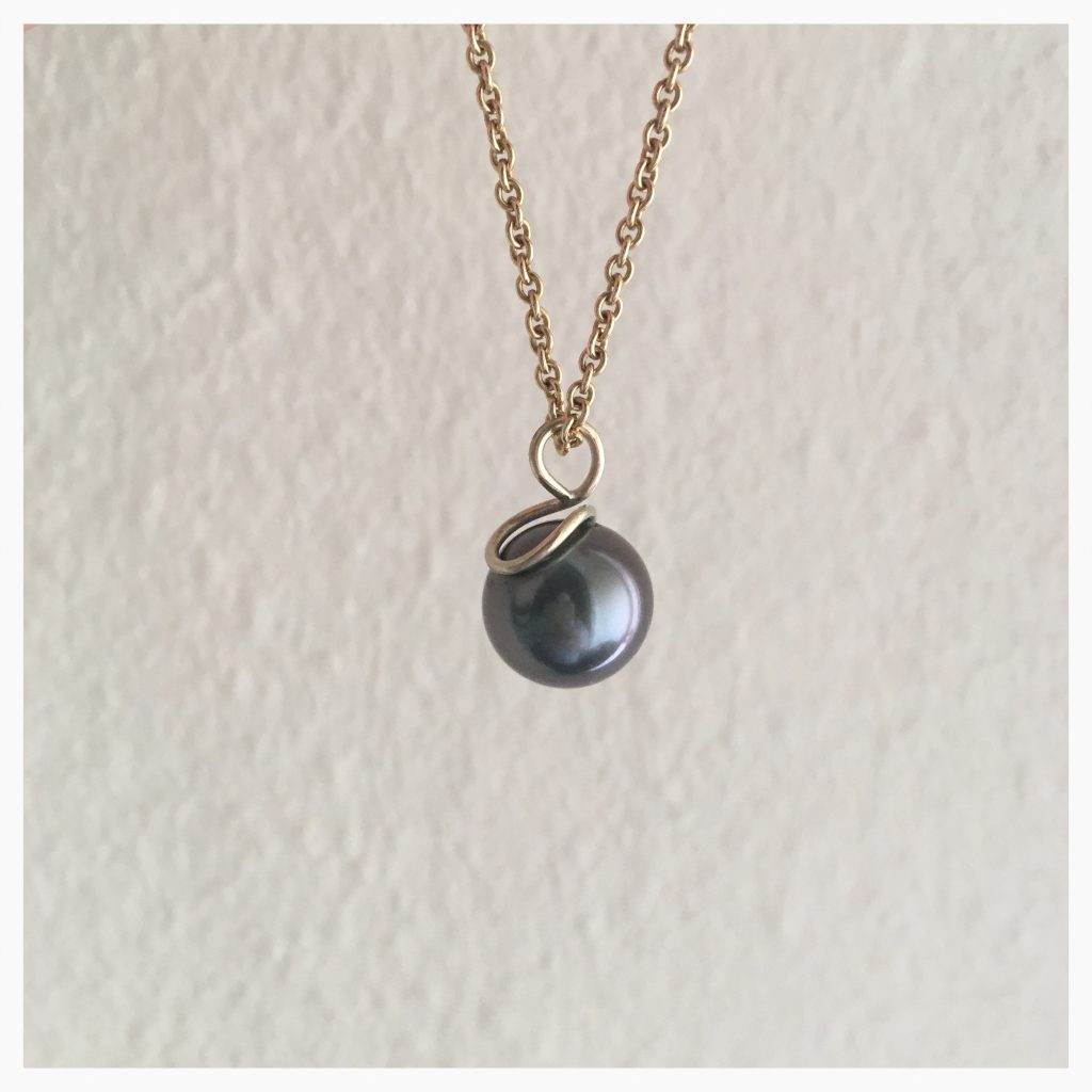 Her er en lille November nyhed! Dette vedhæng er lavet i hånden med en 14kt guld tråd og en 12mm stor rund Tahiti Perle. Den kan købes direkte herunder: