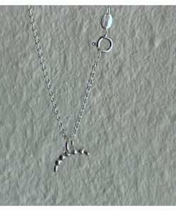 Half Moon Halskæden er lavet af 100% genanvendt Sterling Sølv, og der medfølger en kæde på 45 cm. Dette vedhæng er “den lille” udgave, og der findes en mere fyldig version også.